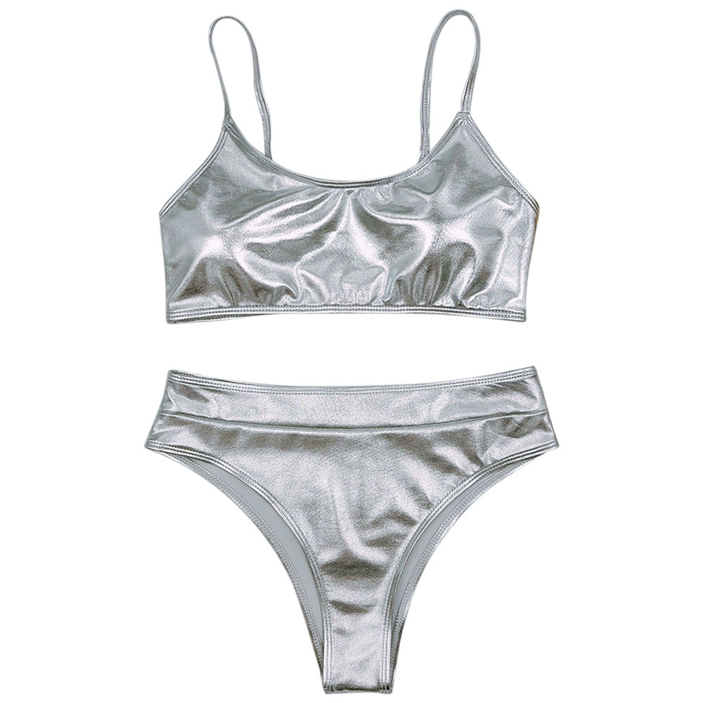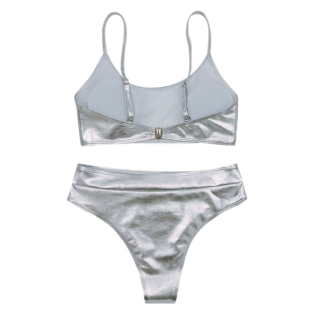 Solid Color Shiny Sexy Bikini Set Padded Swimwear Women Swimsuit