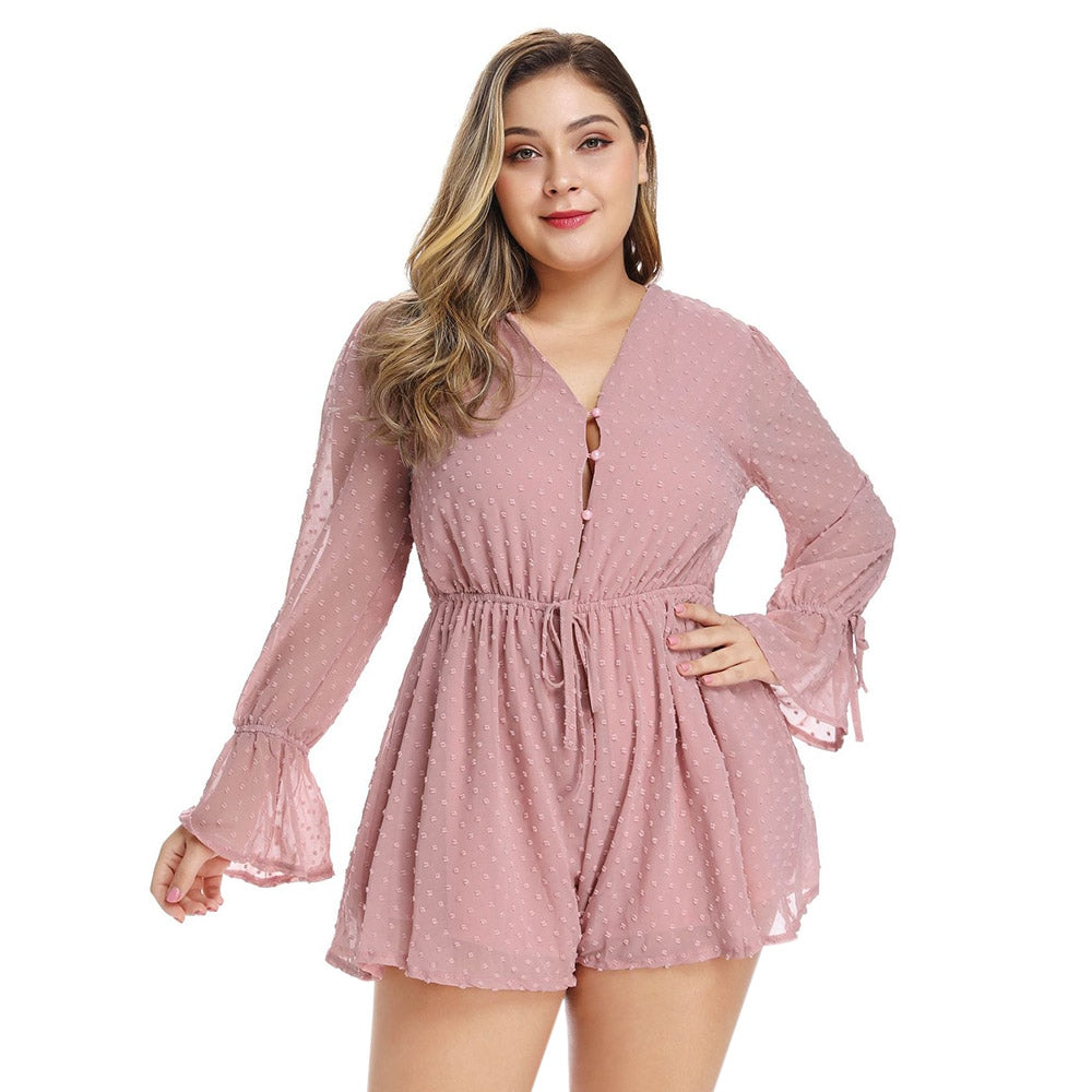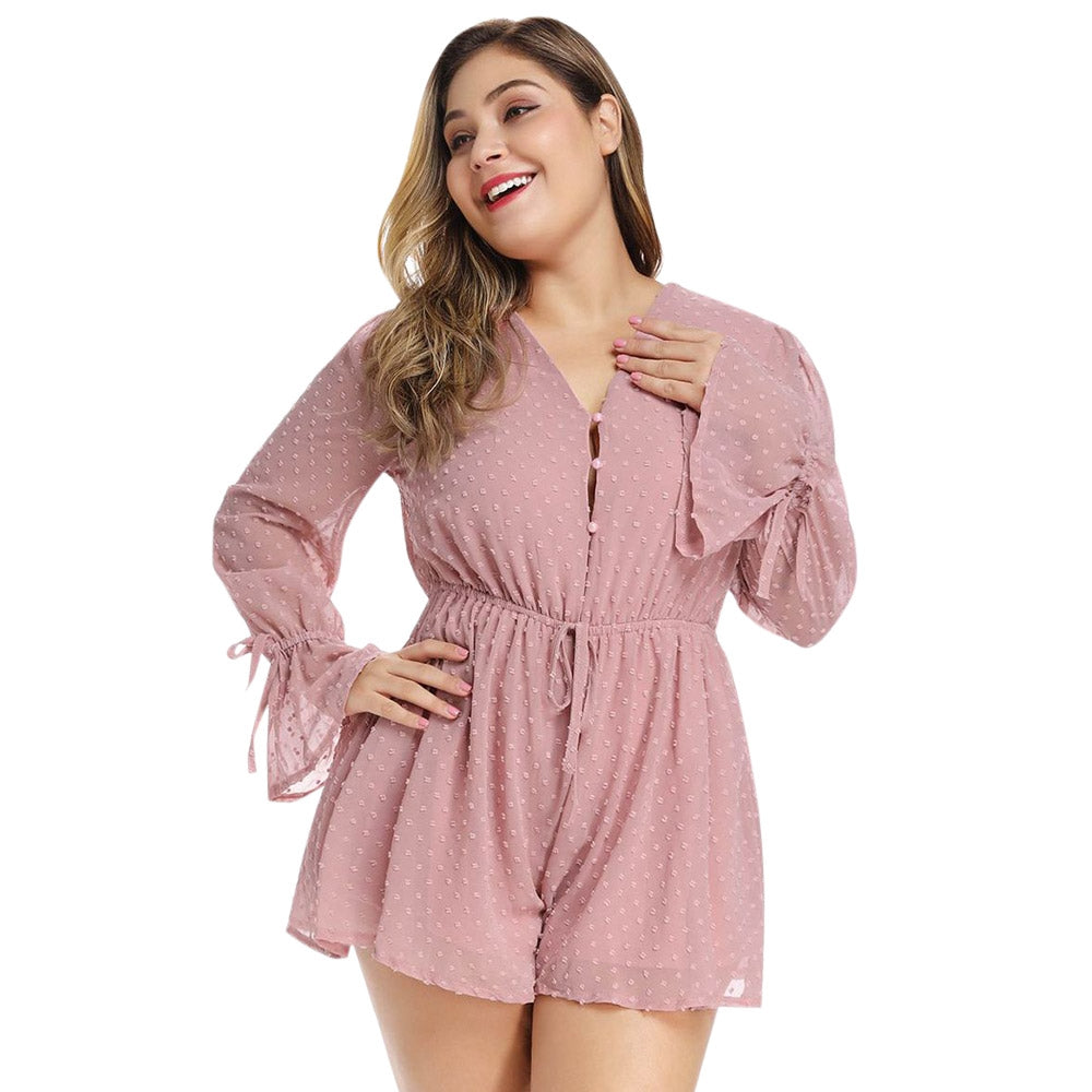 Plus Size Chiffon Women Rompers Bell Sleeve Sexy V Neck Jumpsuit