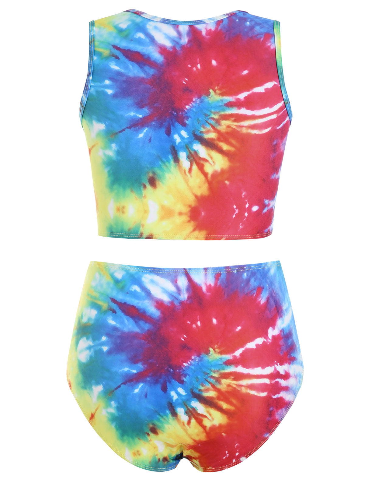 Twist Front Tie Dye Padded Tankini Swimsuit