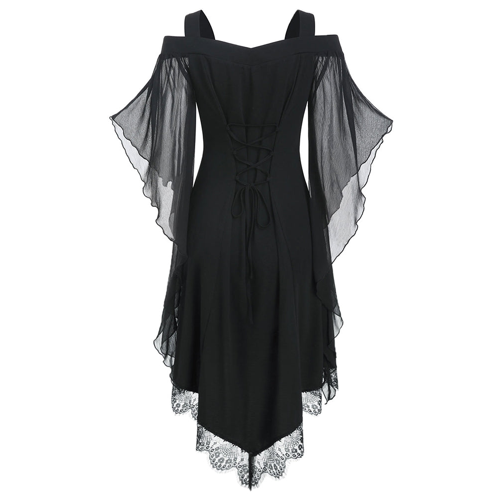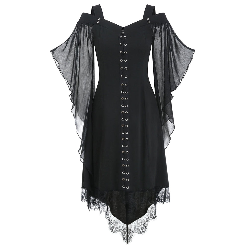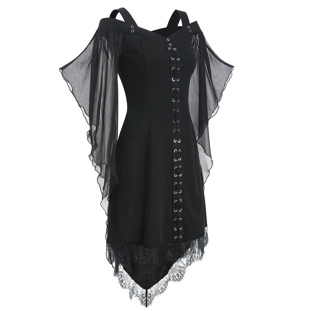 Lace Panel High Low Cold Shoulder Dress