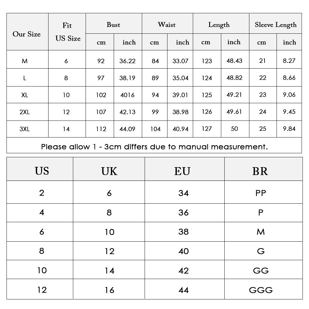 Size Bust Waist Length Sleeve Length