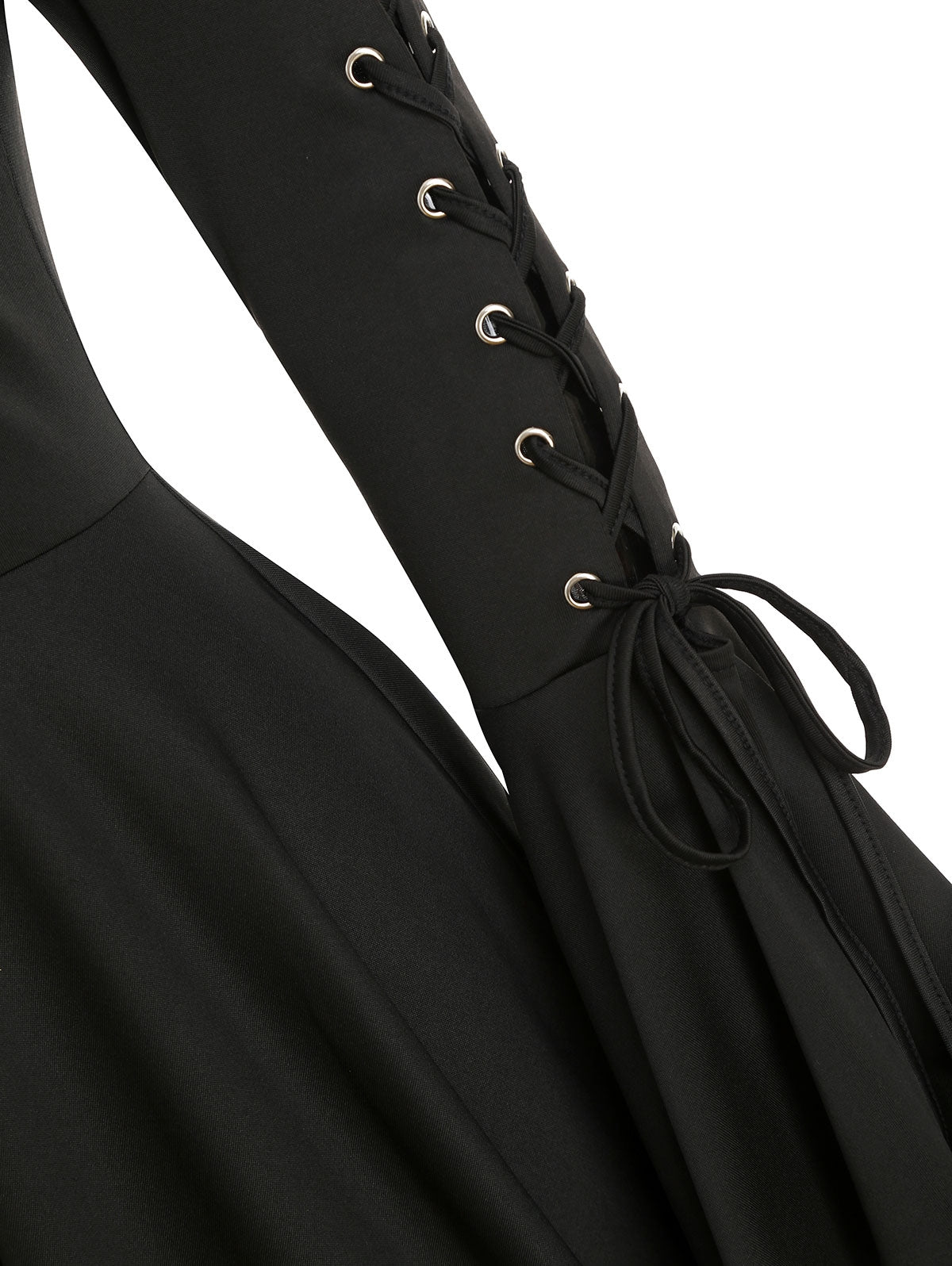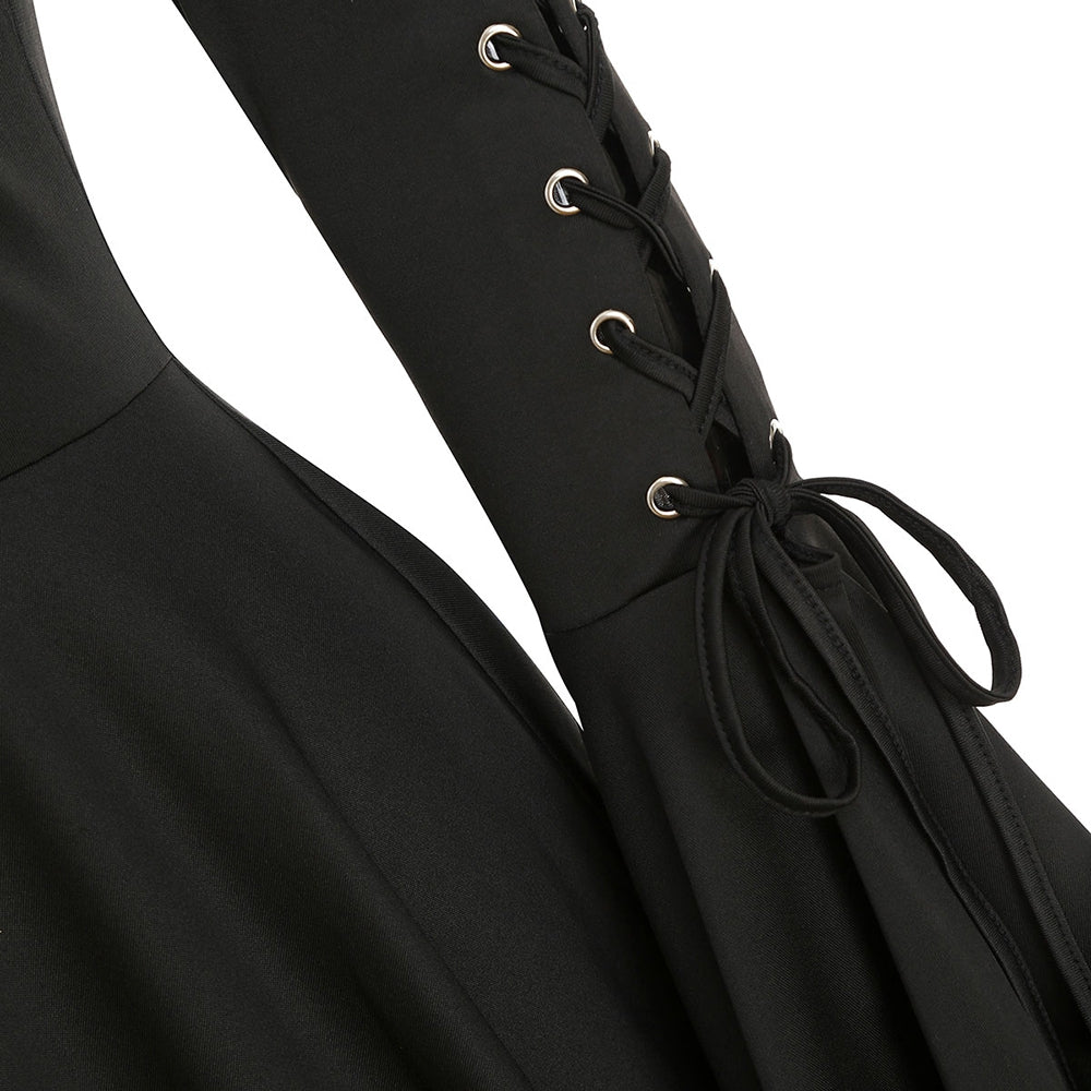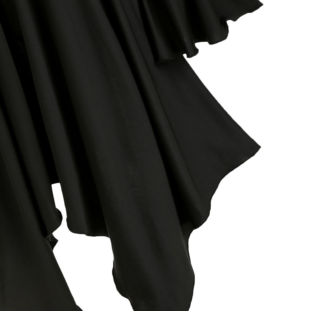 Hooded Lace-up Poet Sleeve Button Up Hanky Hem Skirted Gothic Coat