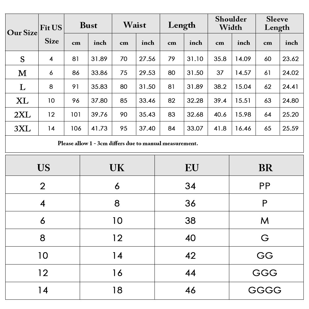 Size Bust Waist Length Shoulder Width Sleeve Length
