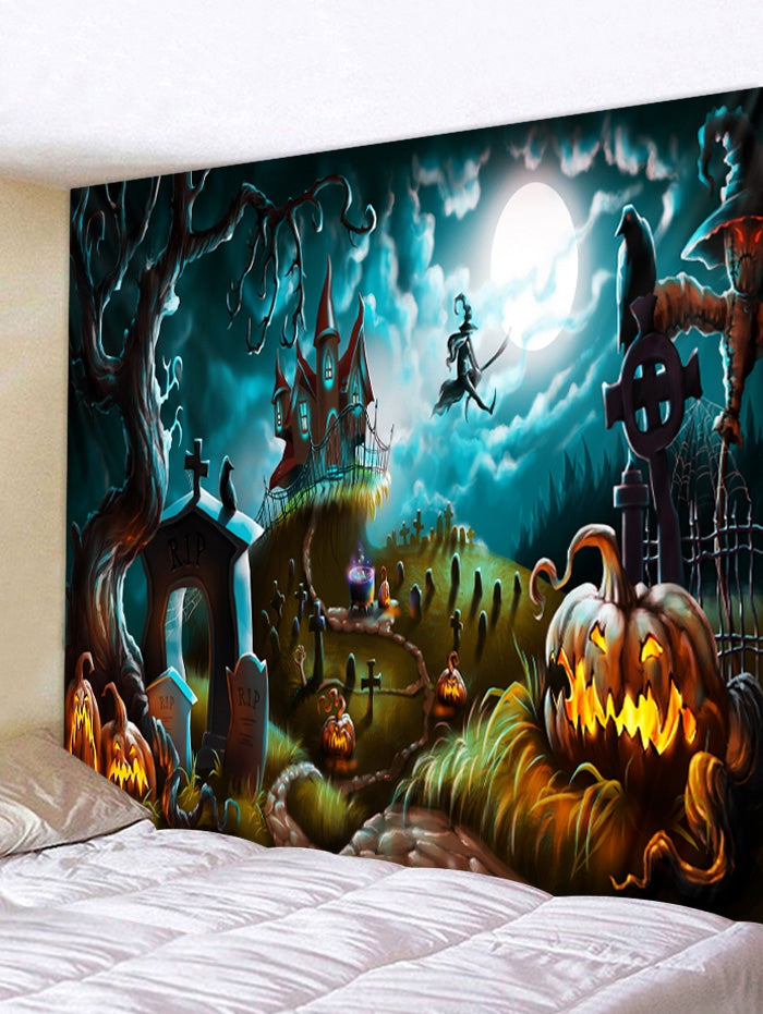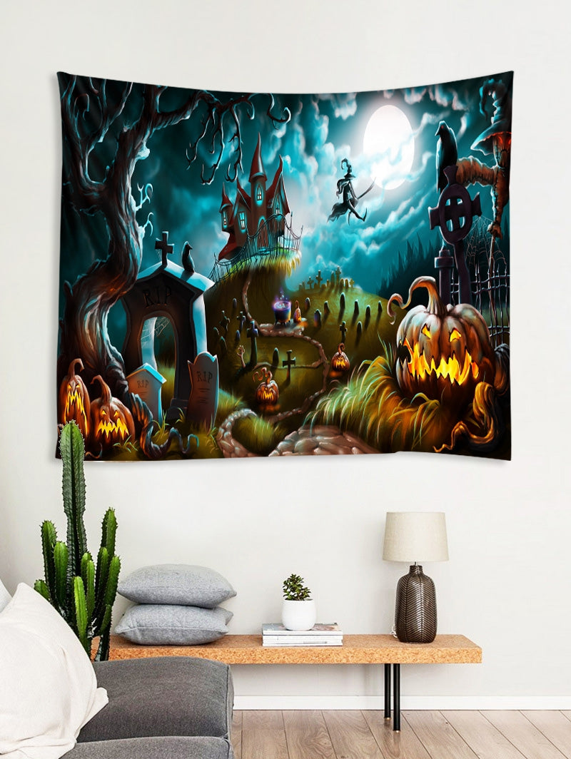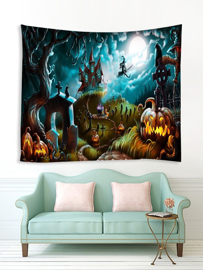 Halloween Pumpkin Castle Witch Pattern Print Tapestry