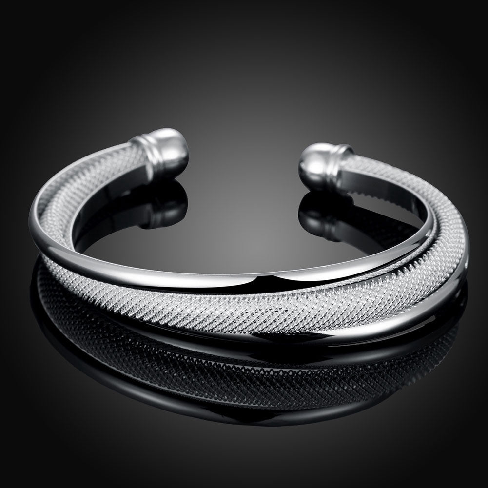 Diagonal Mesh Bracelet Fashion Modeling Silver Bracelet