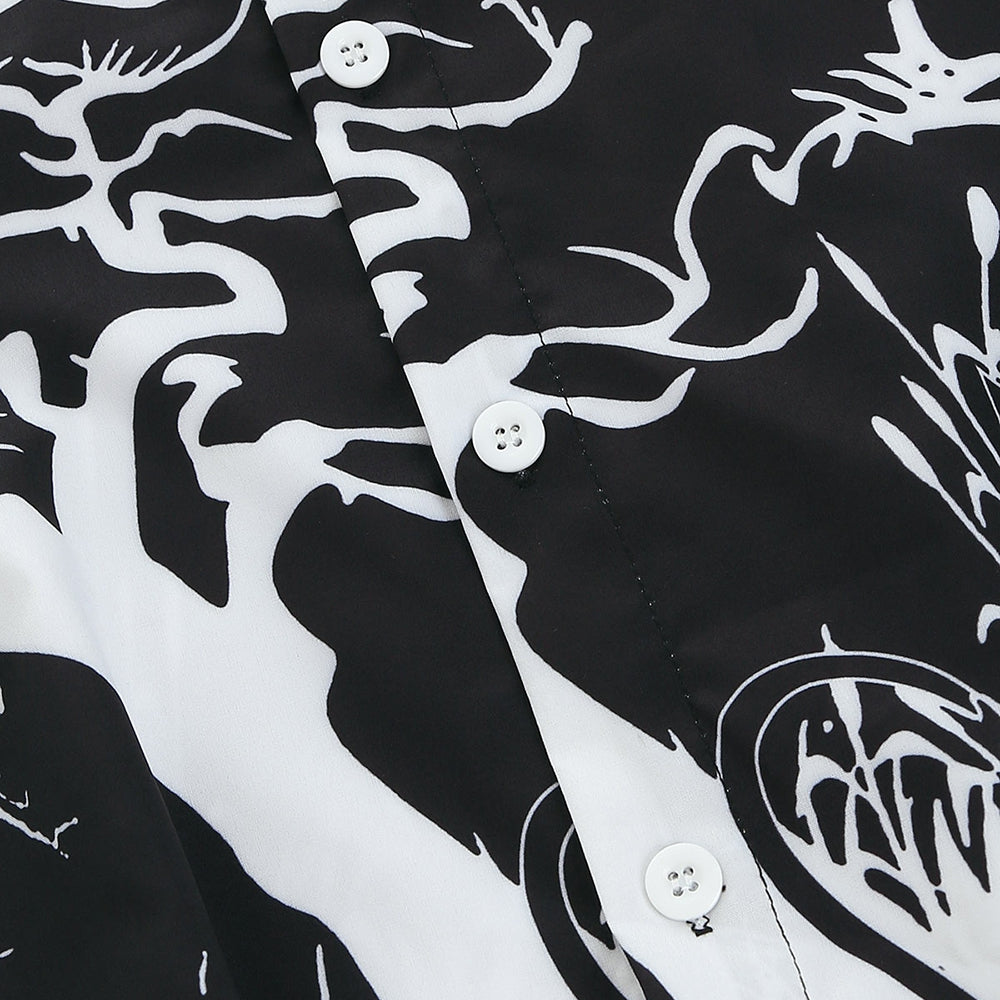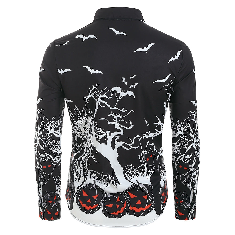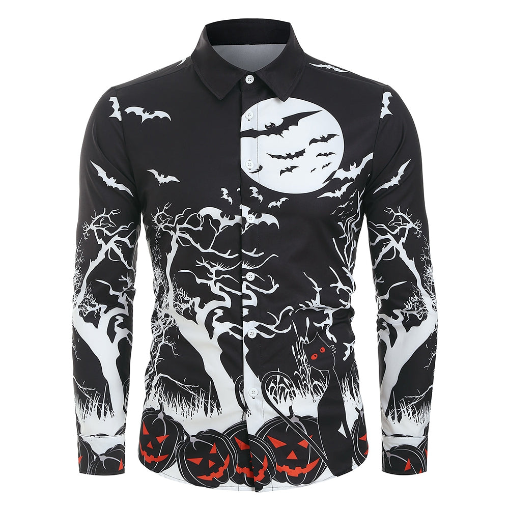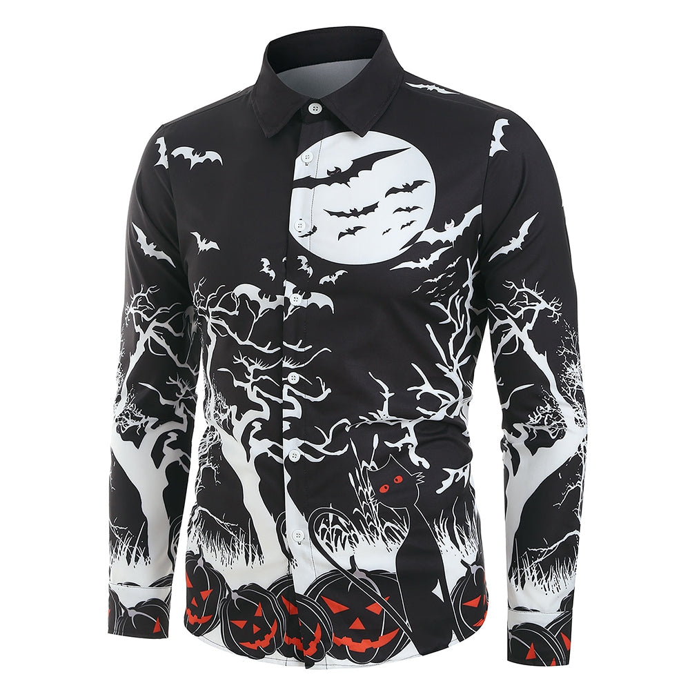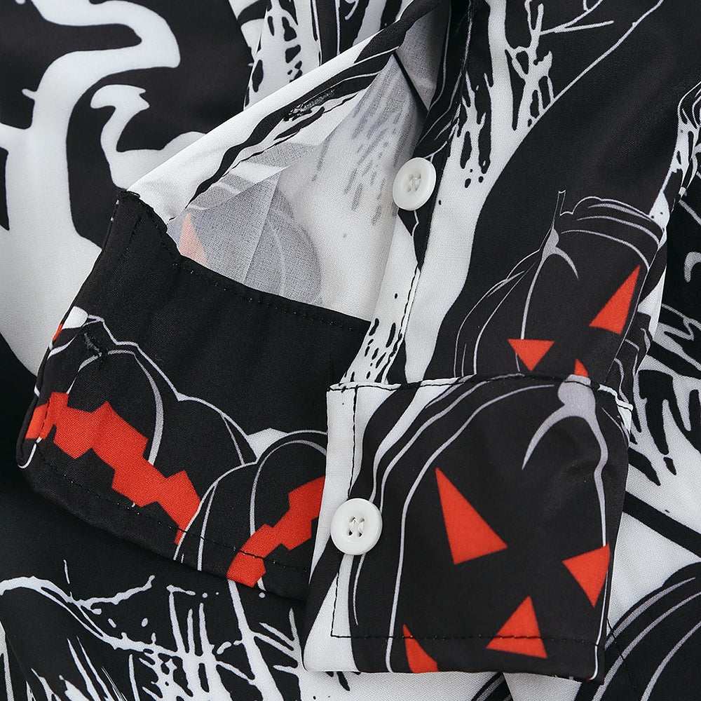 Halloween Night Pumpkins Print Button Up Long Sleeve Shirt
