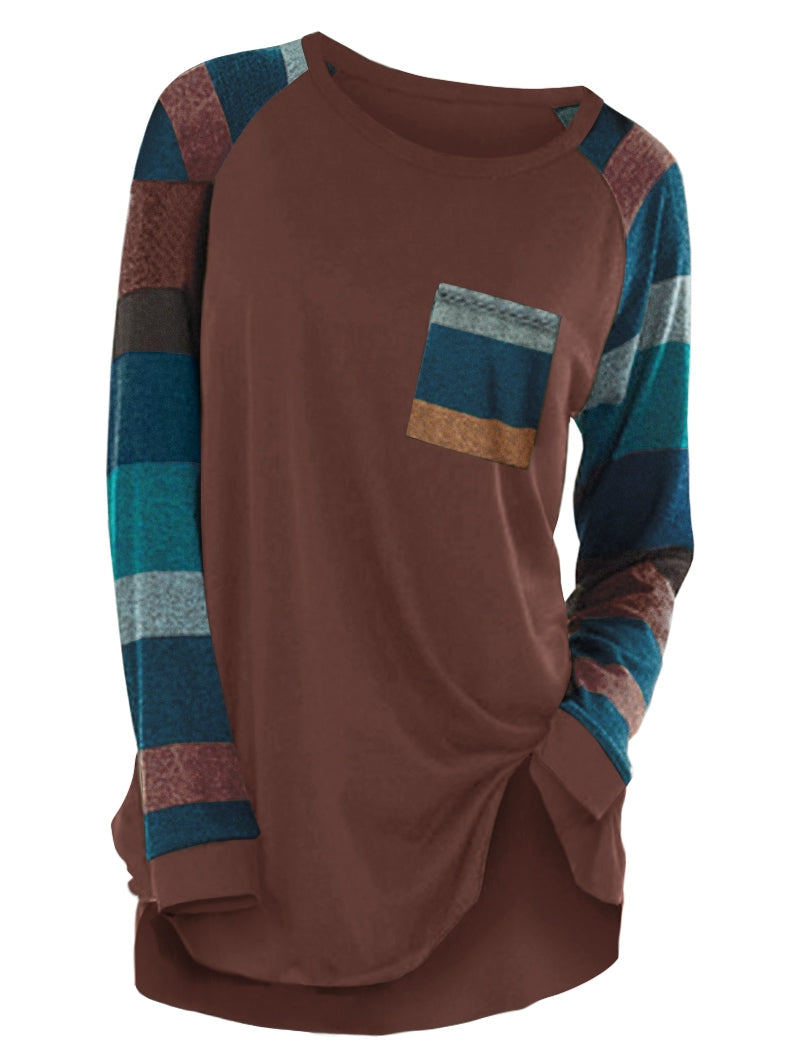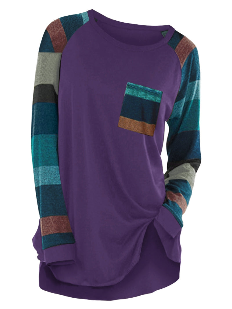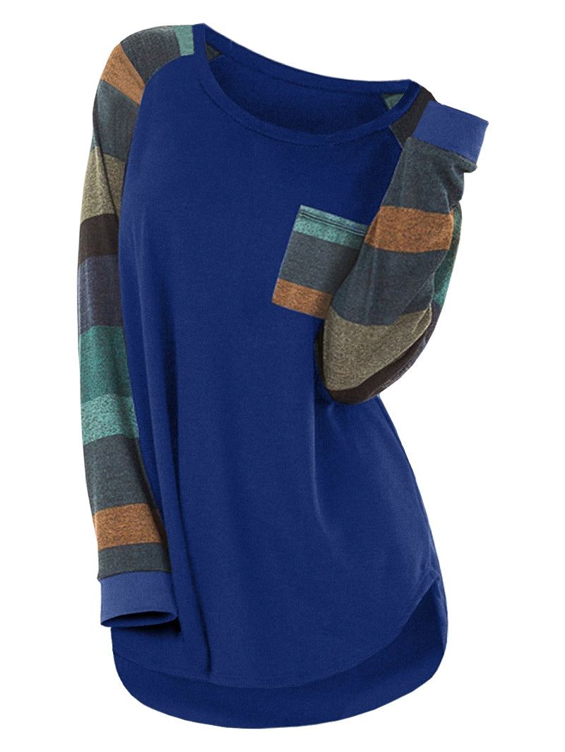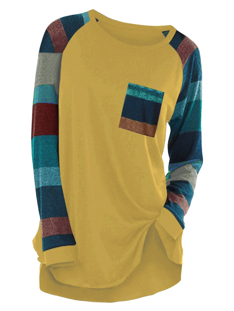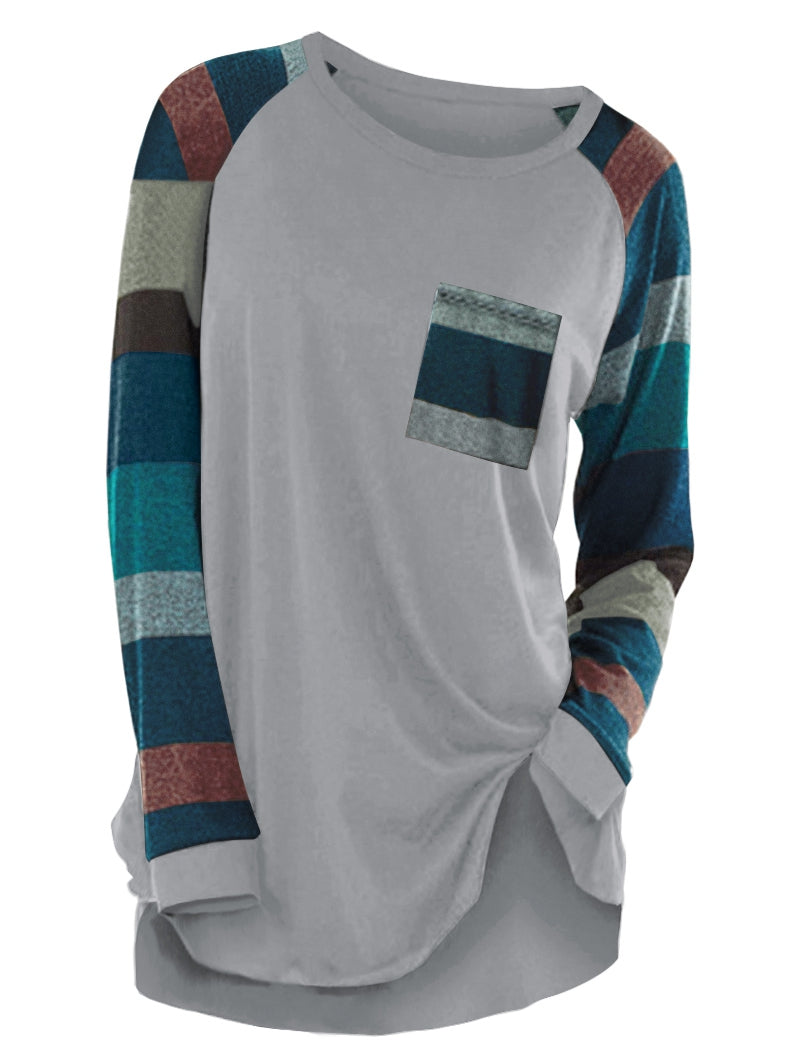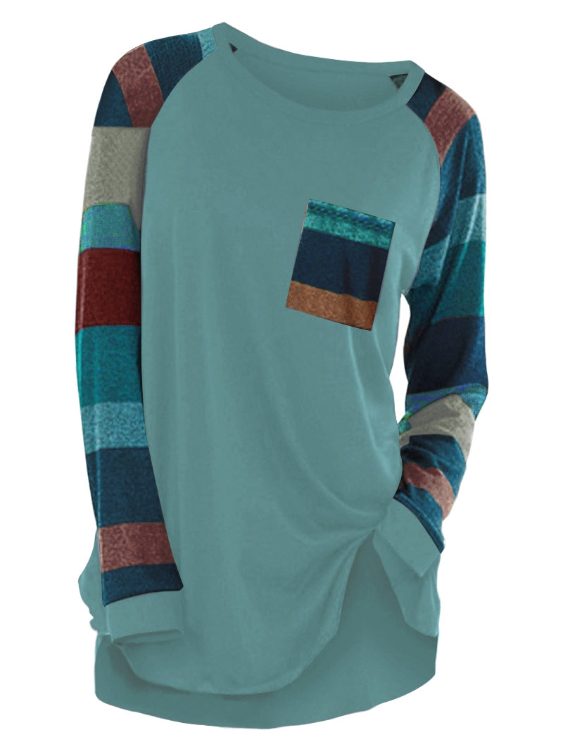 Raglan Sleeve Striped Pocket Longline T-shirt