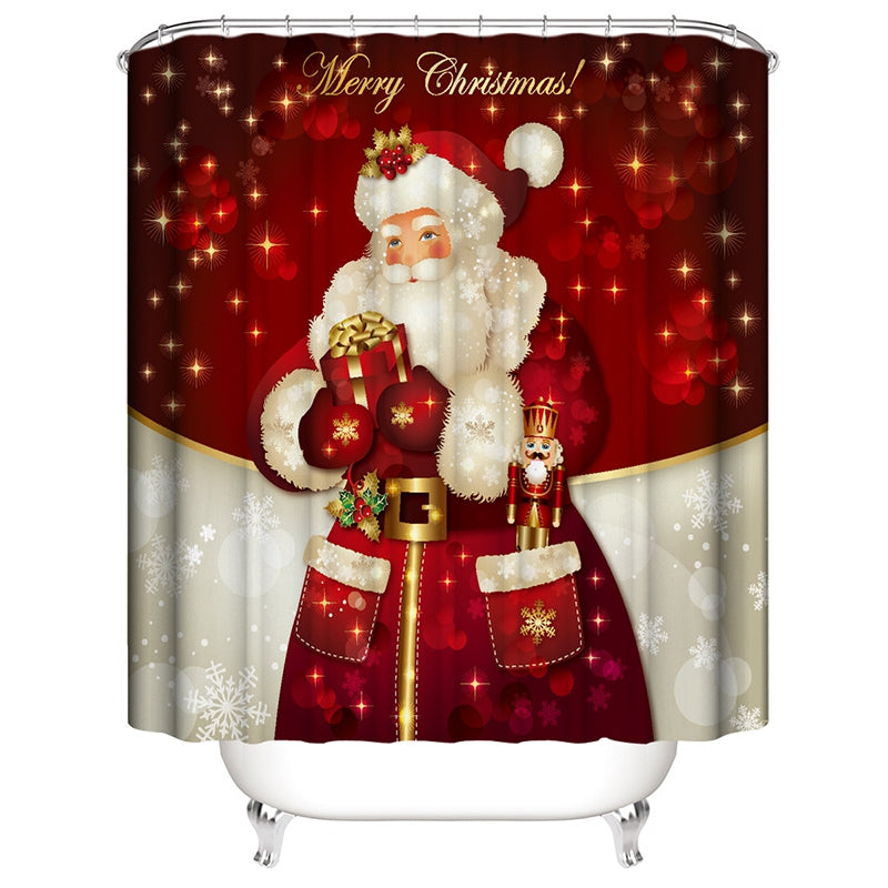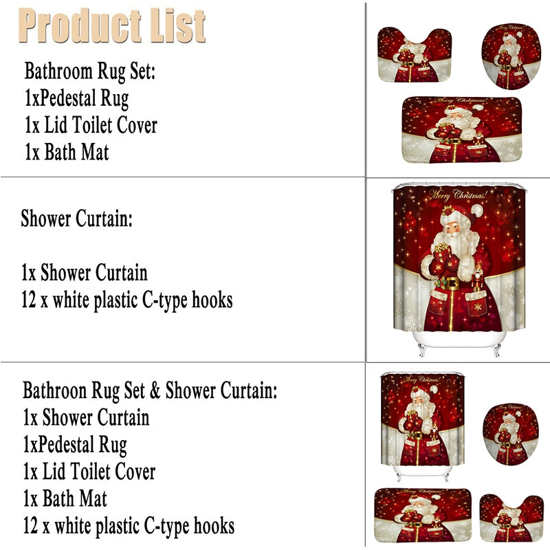 Stylish Merry Christmas Printed Shower Curtain with 12 Hooks Durable Waterproof Bath Curtain Sets Toilet Cover Mat Non-Slip Bathroom Rug Set