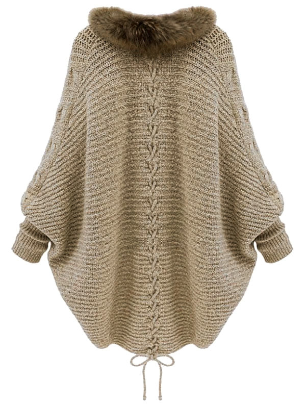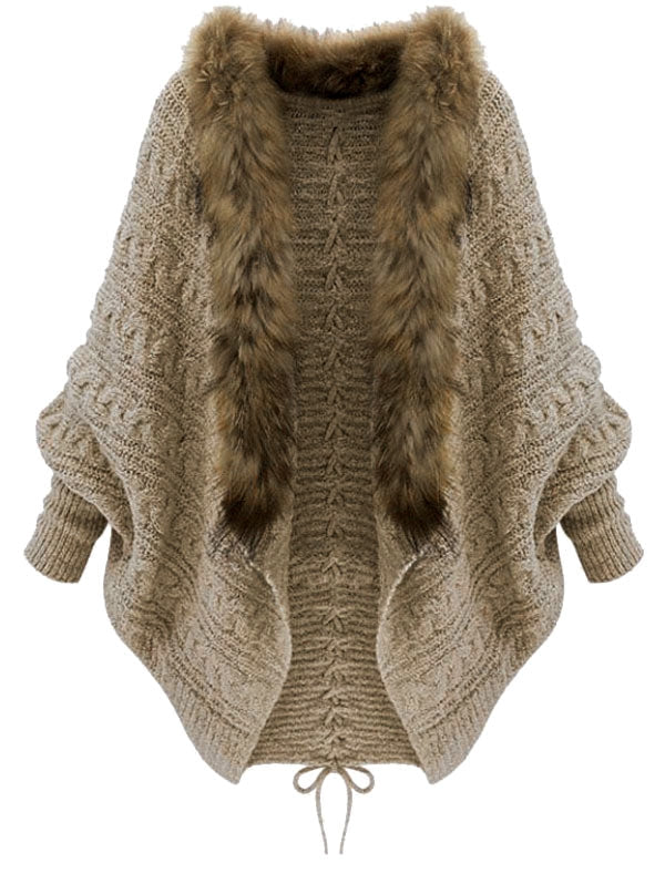 Plus Size Batwing Sleeve Faux Fur Lace Up Chunky Cardigan
