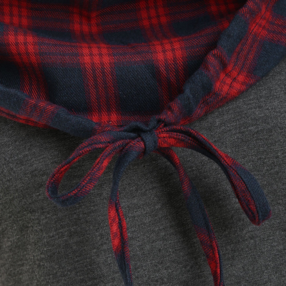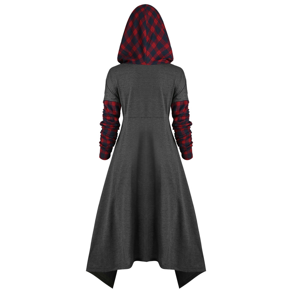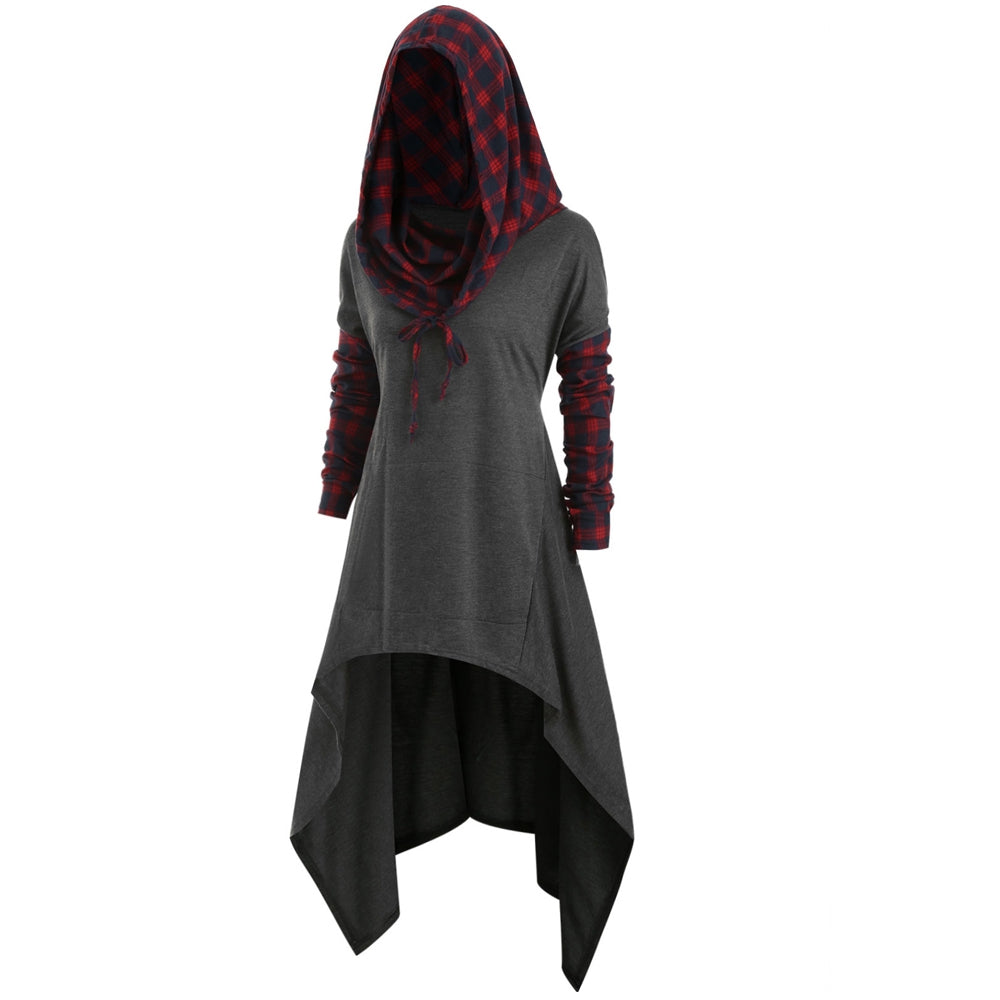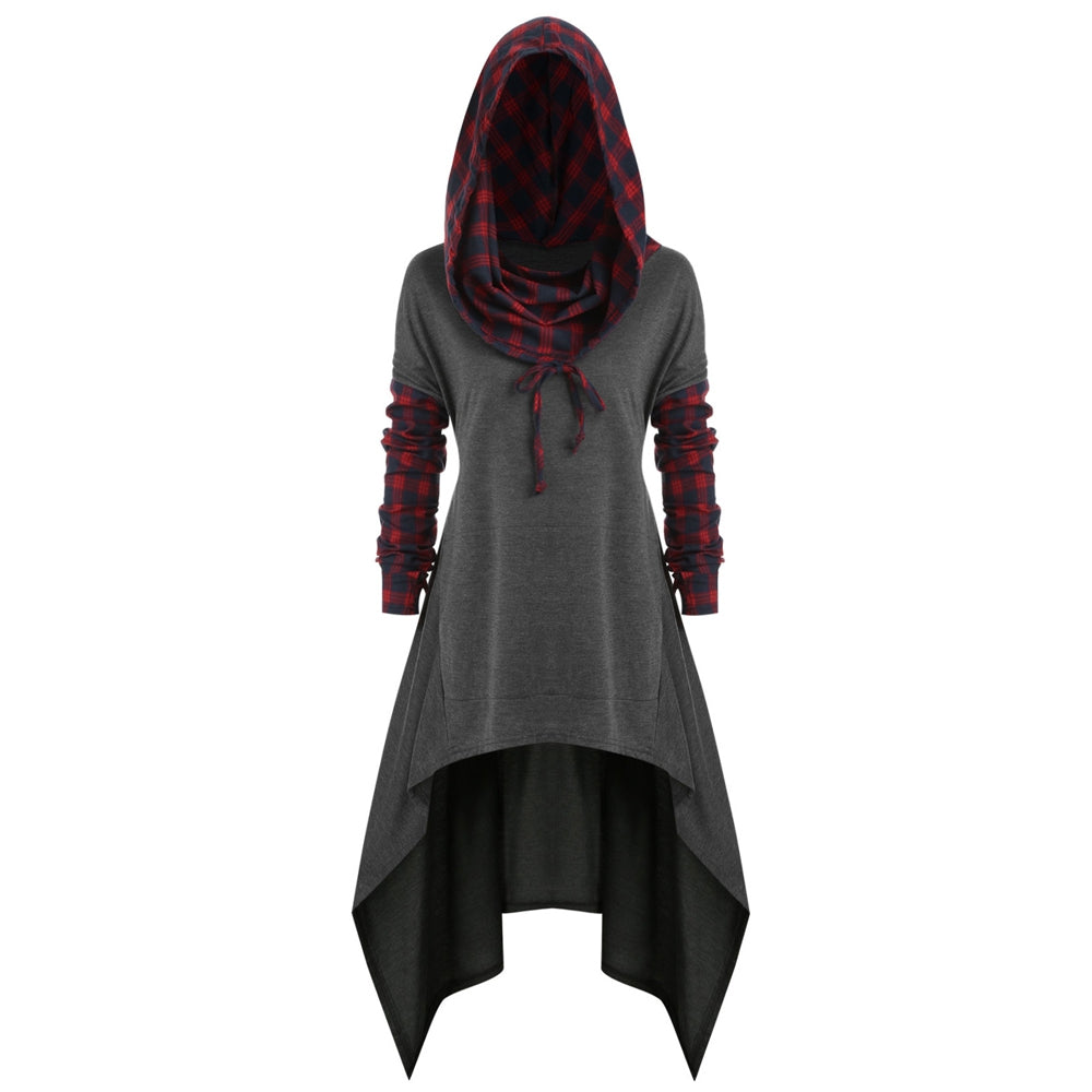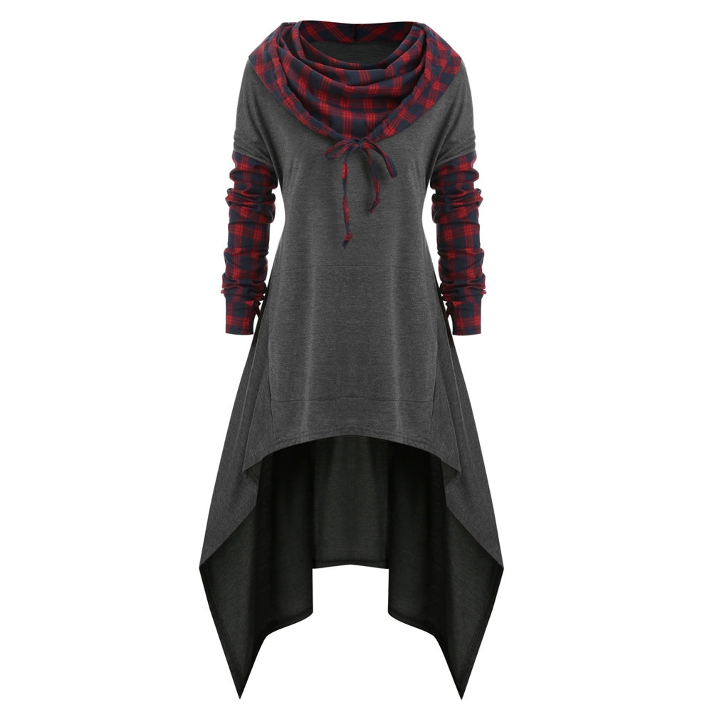 Plus Size Plaid Front Pocket Dip Hem Hoodie