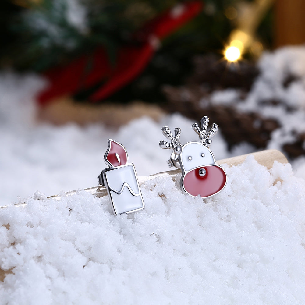 Christmas Oil Dripping Santa Claus Candle Earring Plated with Platinum