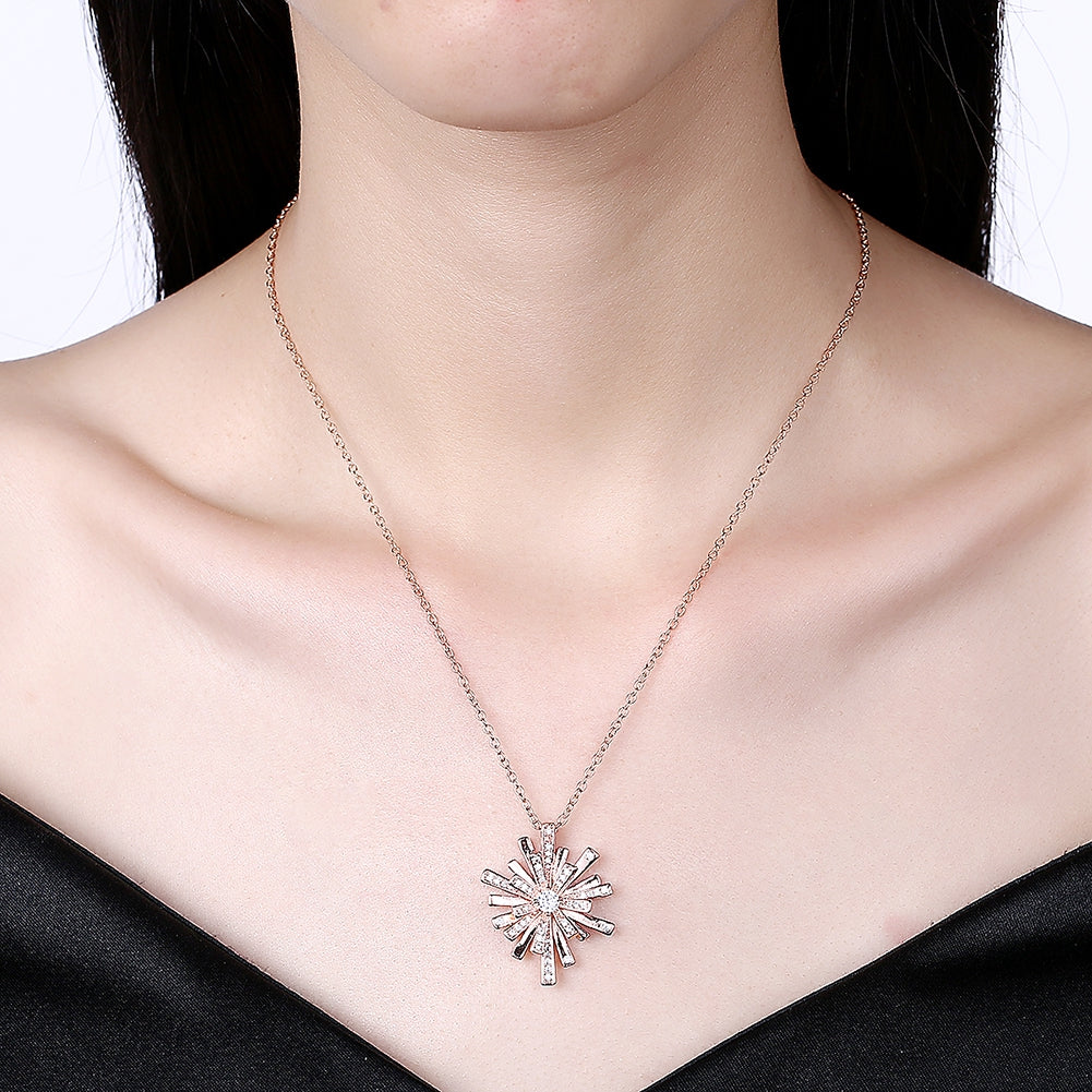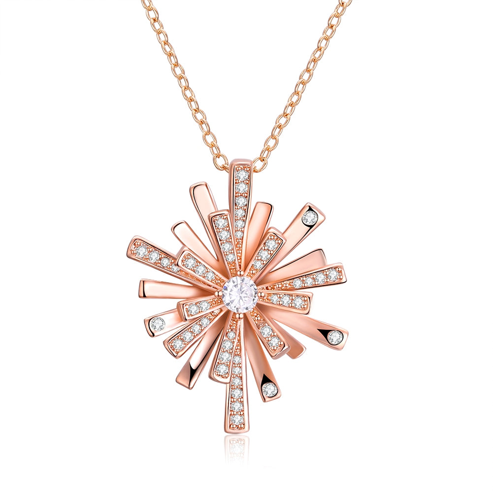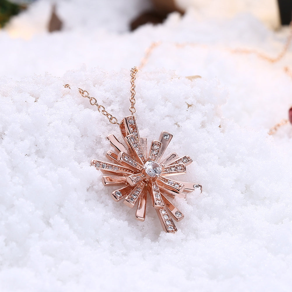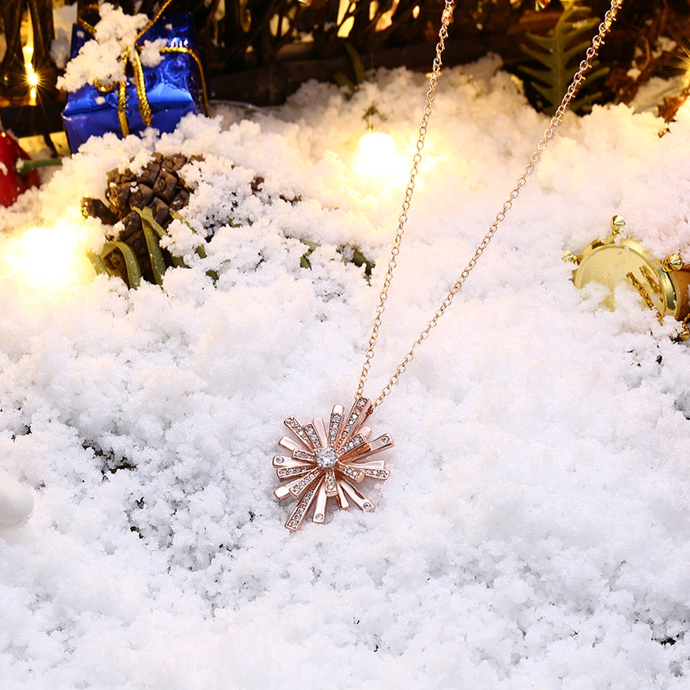 Christmas Snowflake Zircon Necklace White / Rose Gold Plated