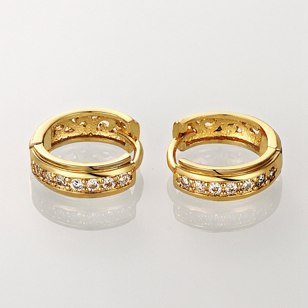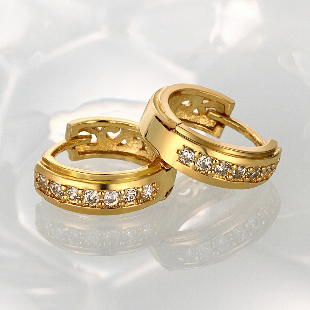 Row Diamond Round Fashionable Gold Zircon Earring Plated with Gold