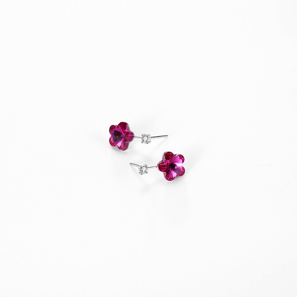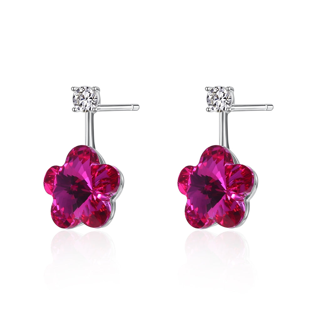S925 Lovely Sterling Silver Pop Earrings Drop Red/Platinum Plated