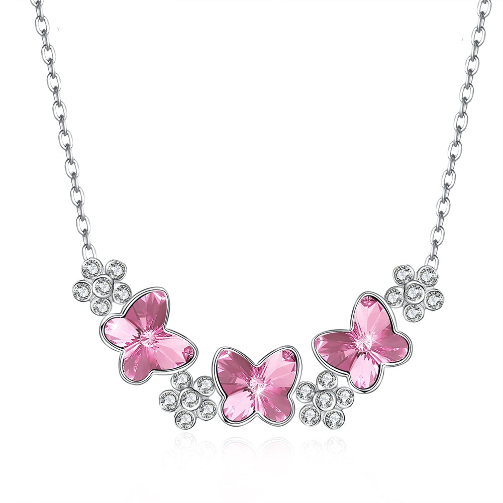 Crystal Butterfly S925 Sterling Silver Necklace Pink/Platinum Plated
