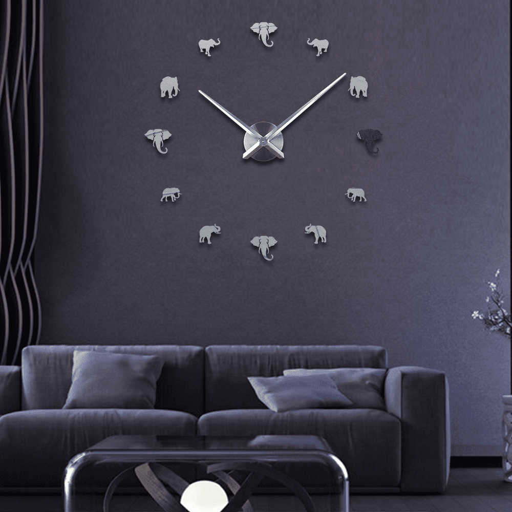 Creative DIY Wall Clock Frameless Animals Elephant Large Home Decoration