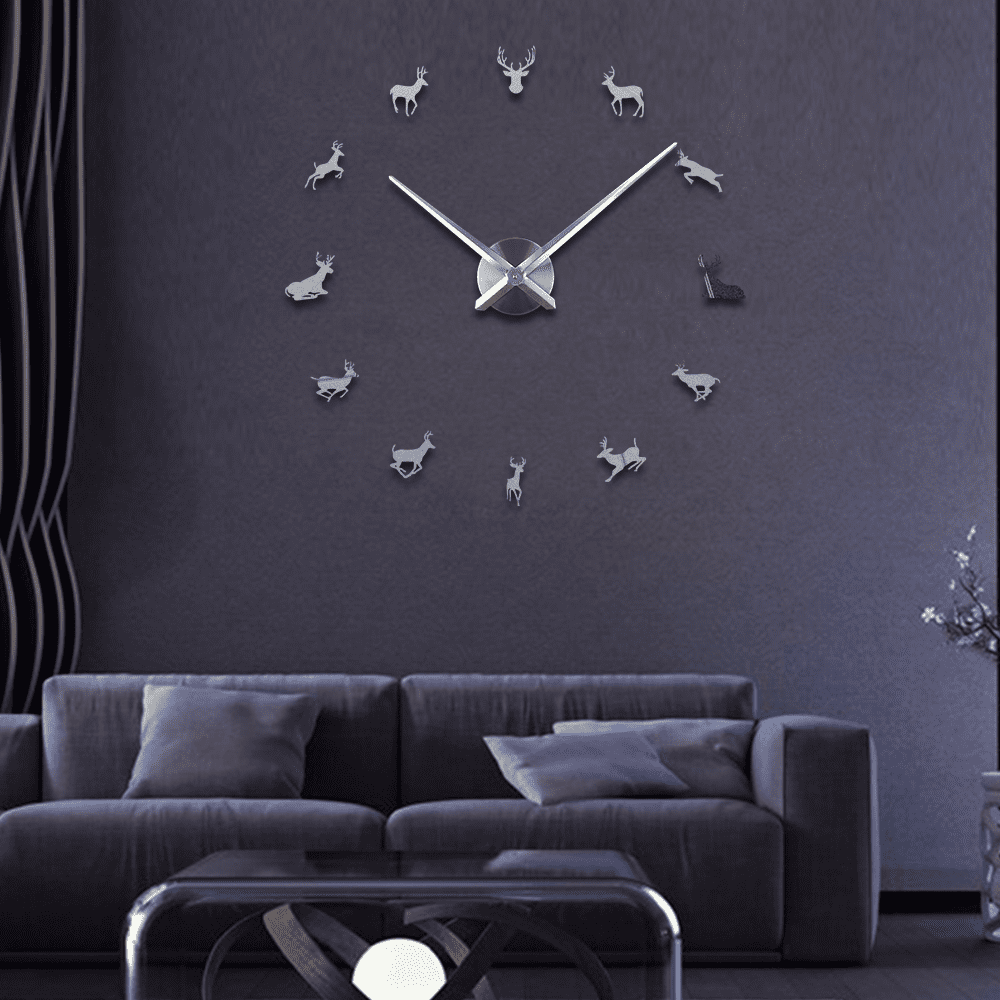 Creative DIY Animals Elk Wall Clock Frameless Home Decoration