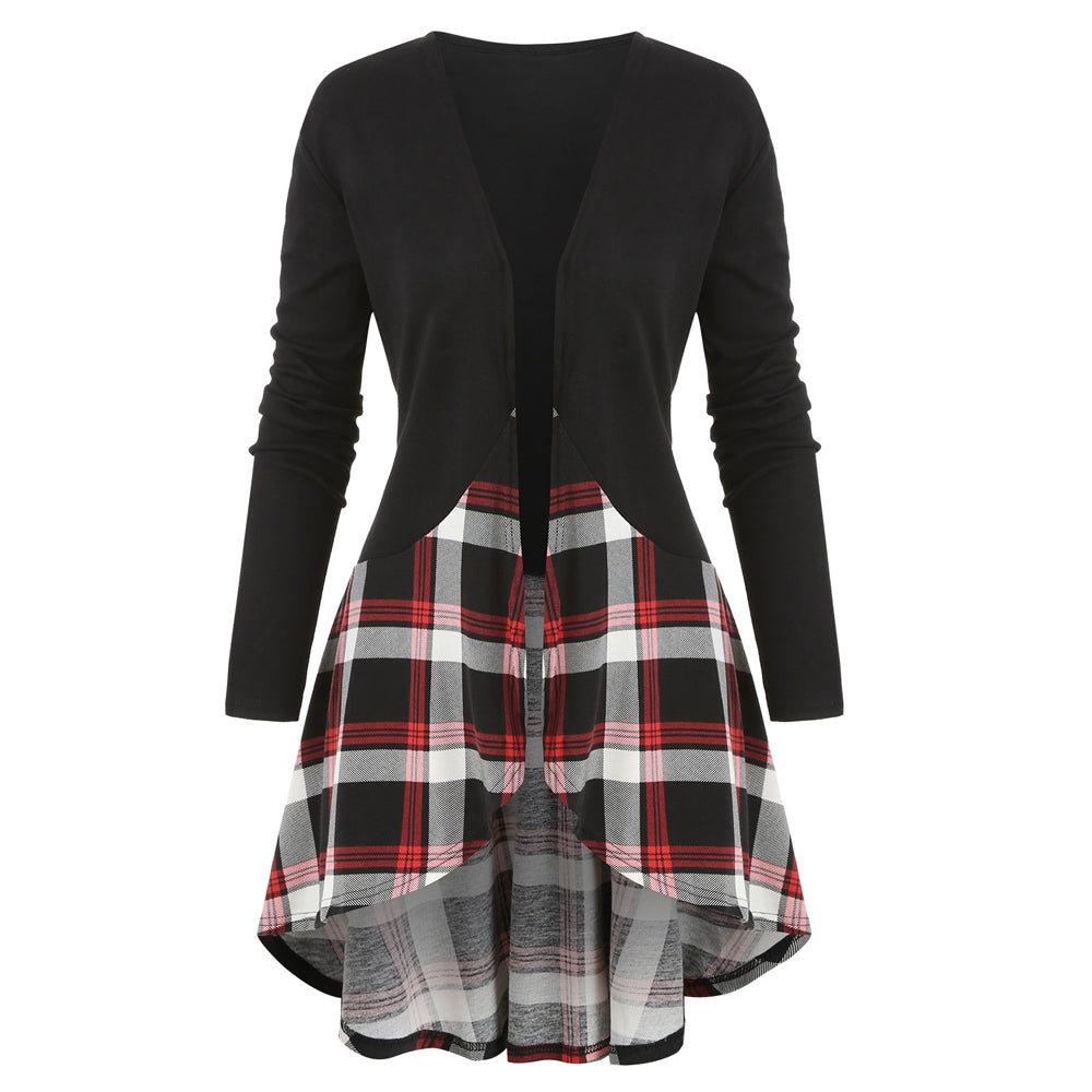 Plus Size Open Front Plaid Asymmetric Cardigan