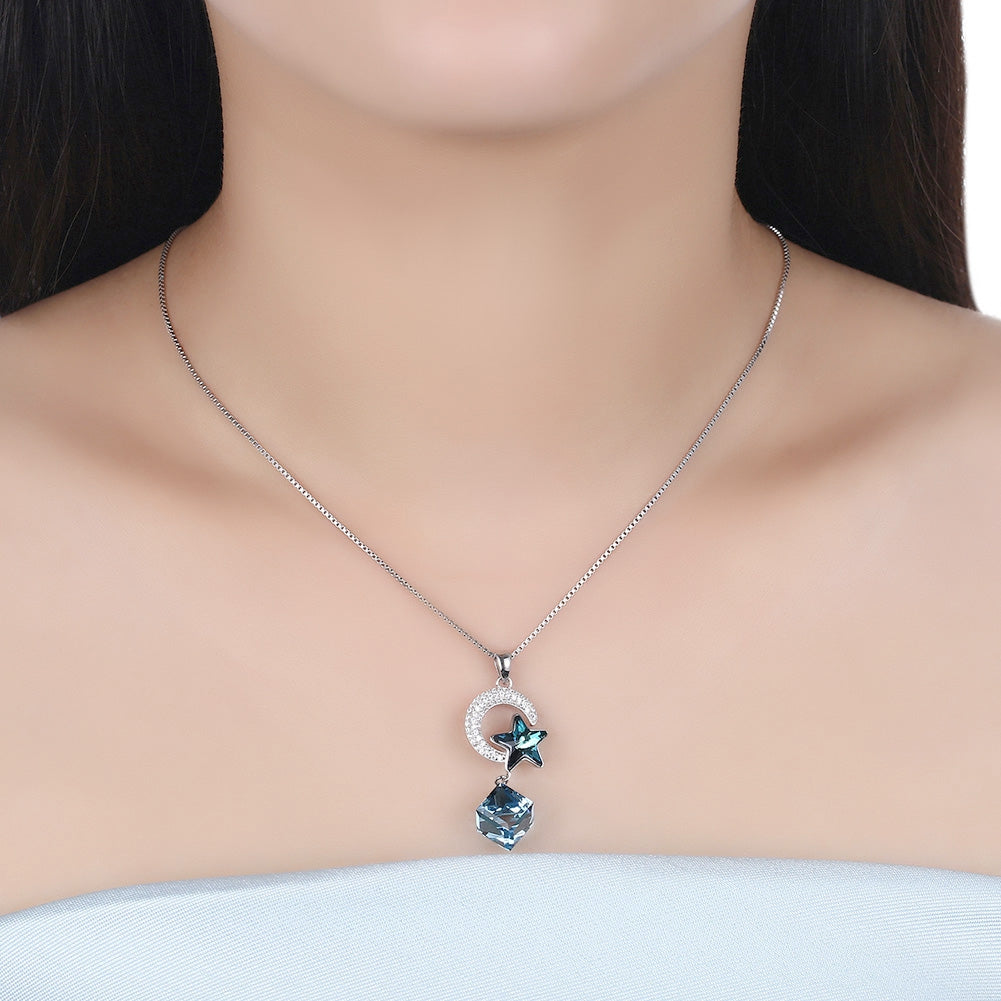 S925 Sterling Silver Star and Moon Necklace
