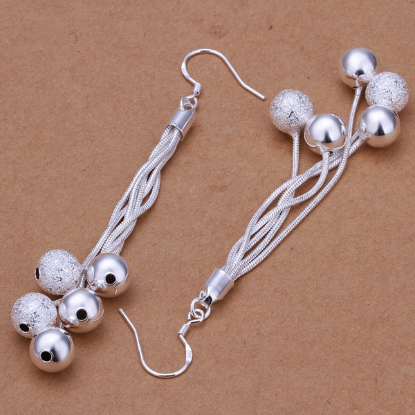 Five-Wire Sand Pearl Earrings Silver Jewelry Spherical Shape Simple Earrings
