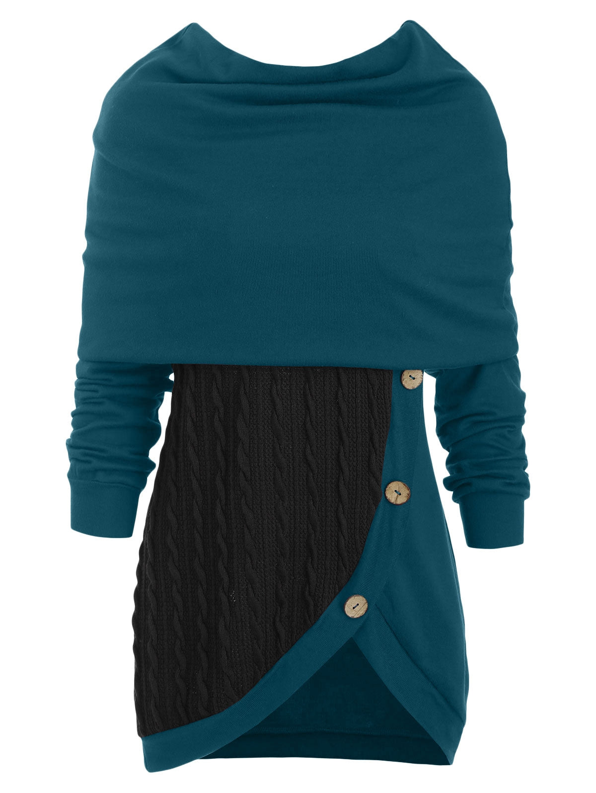 Cowl Neck Cable Knit Tunic Knitwear