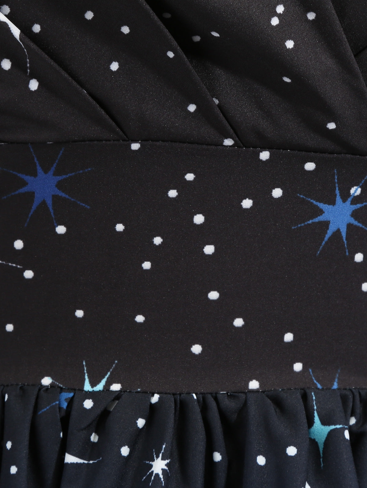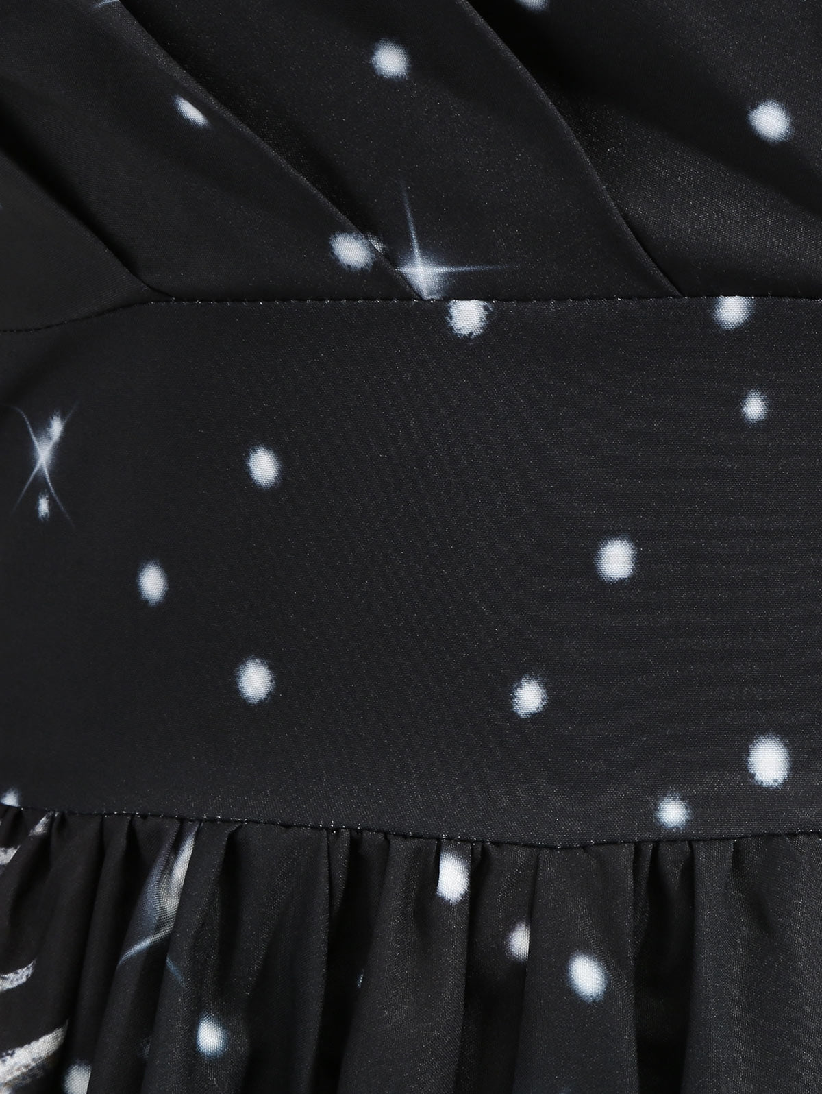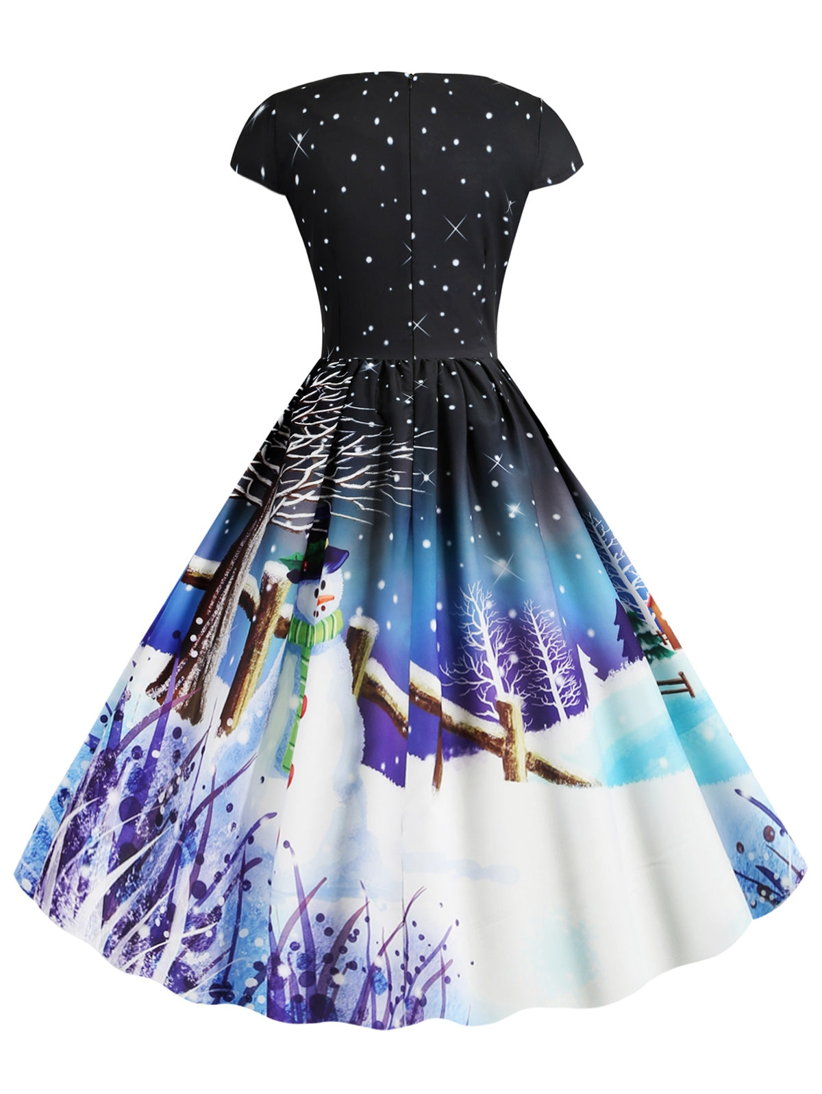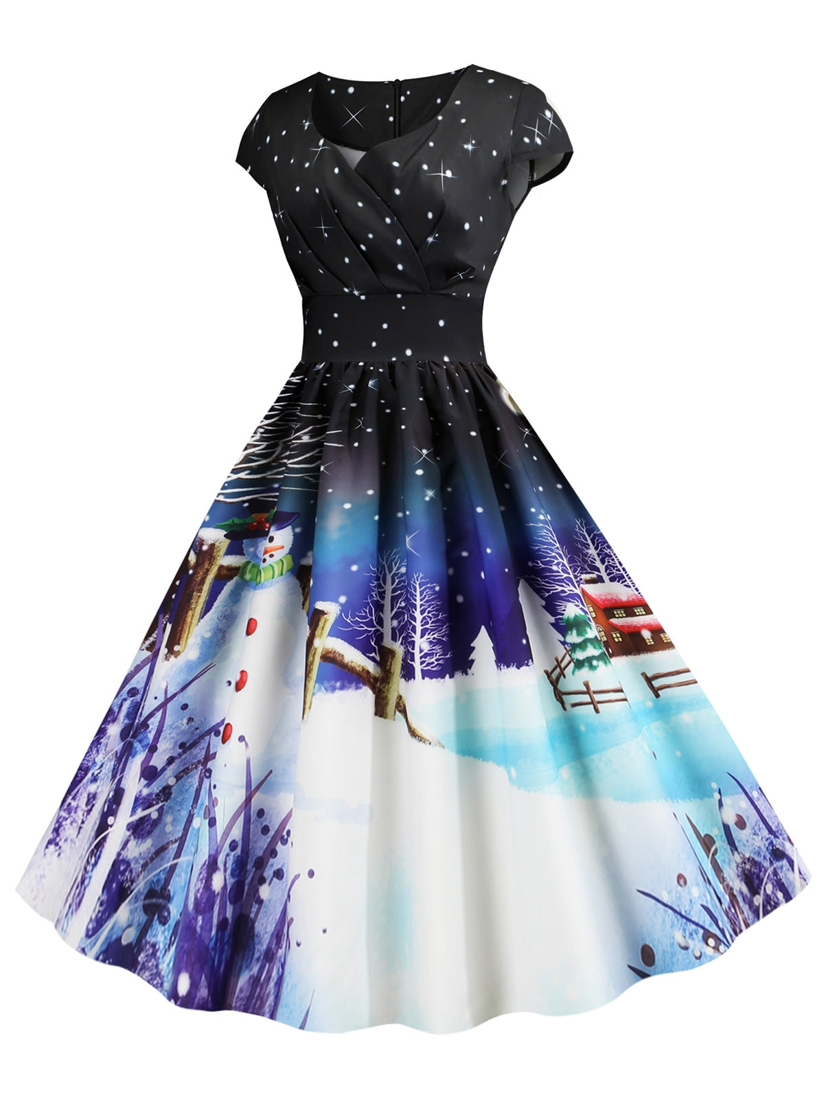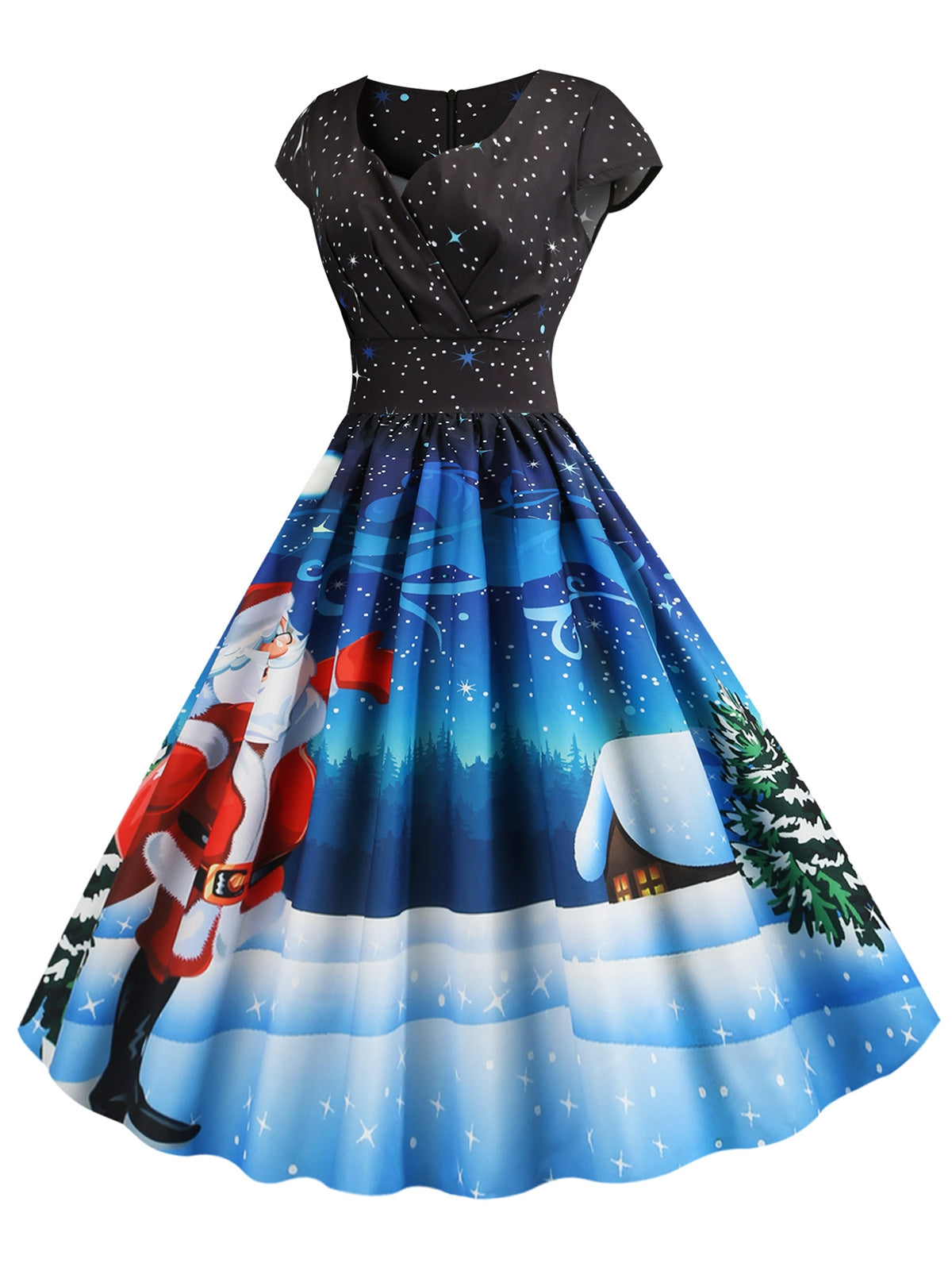 Pleated Christmas Santa Claus Elk Snowman Print Surplice Dress