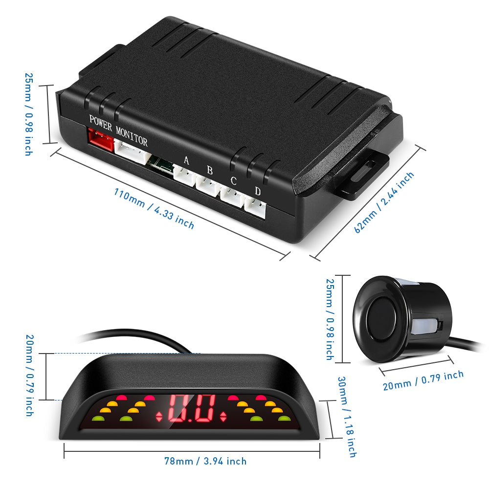 Includes 4 ultrasonic sensors with advanced detection performance, anti-freezing, water-resistant, and shock-proof, which could be easily fitted into your car.