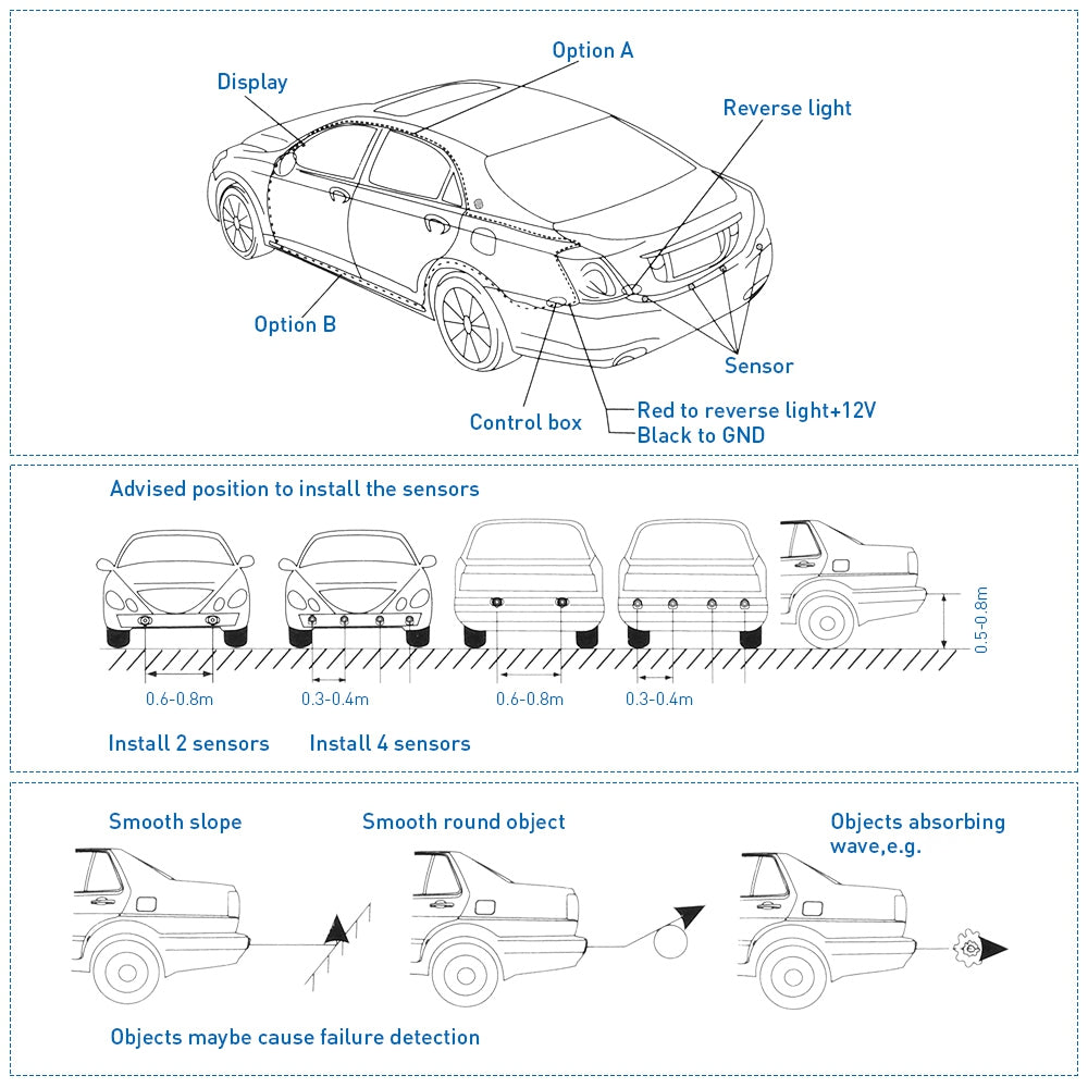 Includes 4 ultrasonic sensors with advanced detection performance, anti-freezing, water-resistant, and shock-proof, which could be easily fitted into your car.