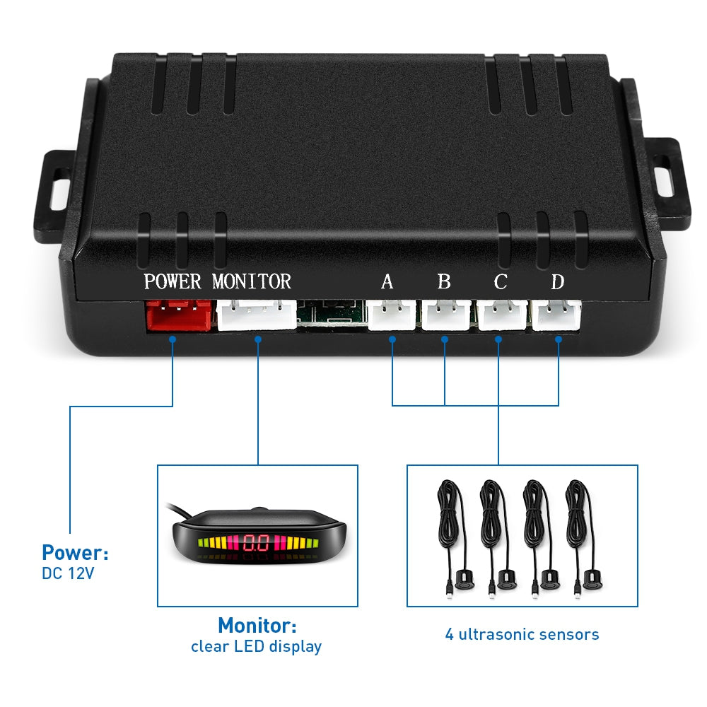 Includes 4 ultrasonic sensors with advanced detection performance, anti-freezing, water-resistant, and shock-proof, which could be easily fitted into your car.