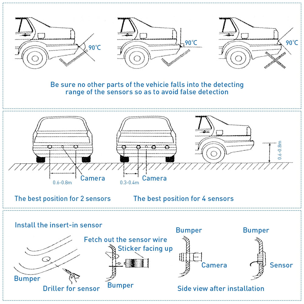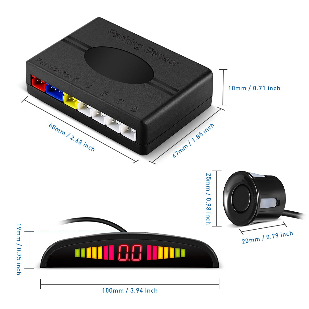 Includes 4 ultrasonic sensors with advanced detection performance, anti-freezing, water-resistant, and shock-proof, which could be easily fitted into your car.