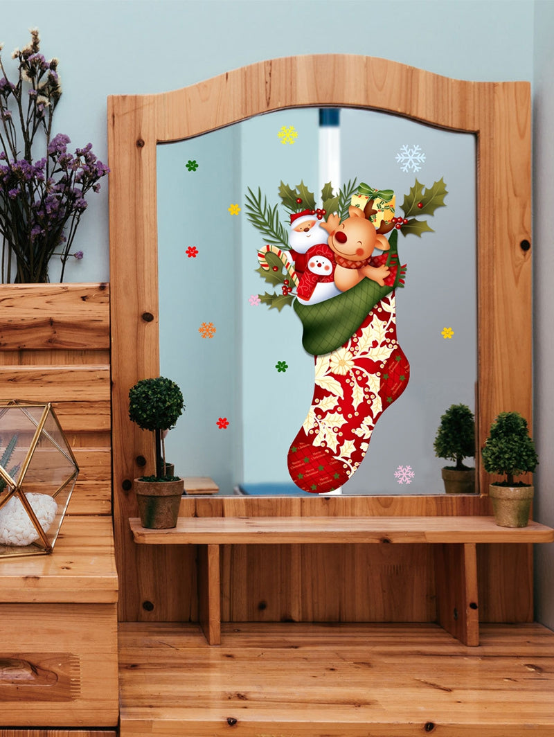 Christmas Stocking Snowman Elk Print Decorative Wall Stickers