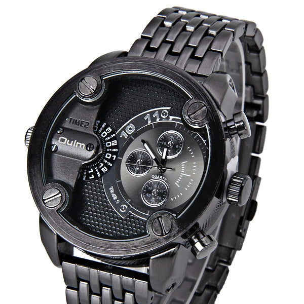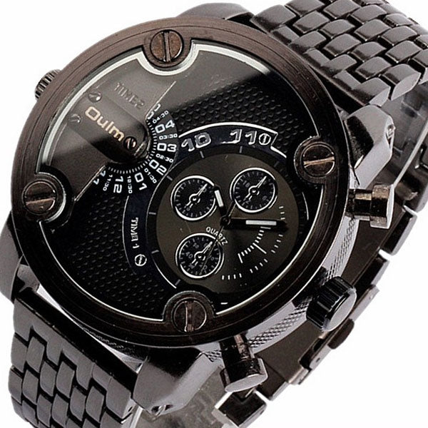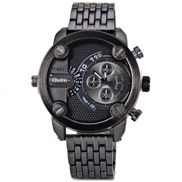 Oulm Fashion Waterproof Quartz Watch with Double Movt Analog Indicate Steel Watchband for Men