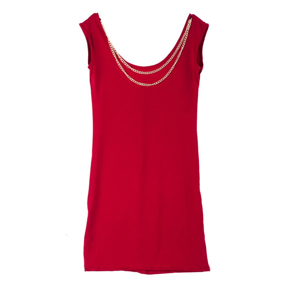Sexy Scoop Neck Sleeveless Chain Embellished Dress For Women