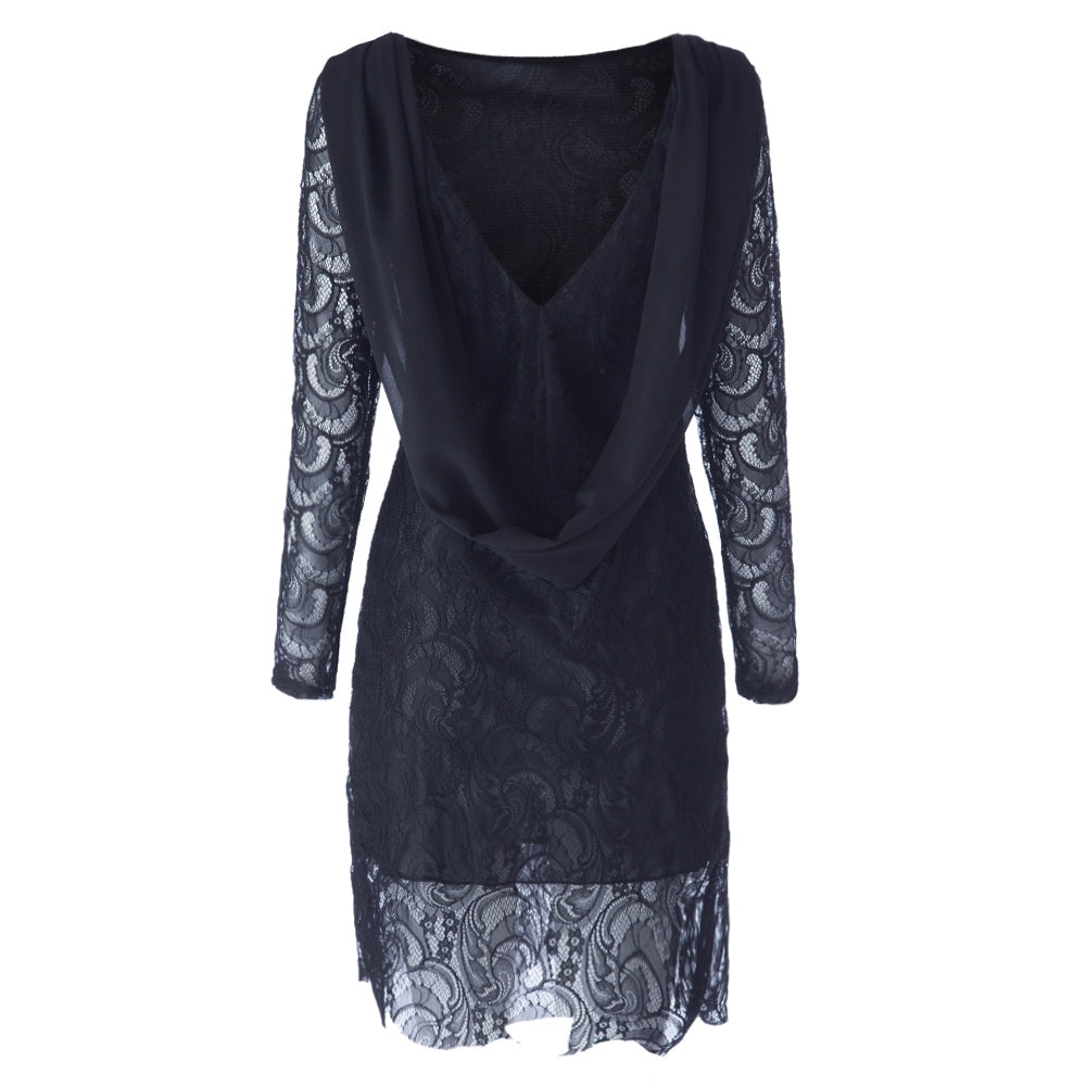 Solid Color Long Sleeve Round Collar Backless Packet Buttock Women's Dress